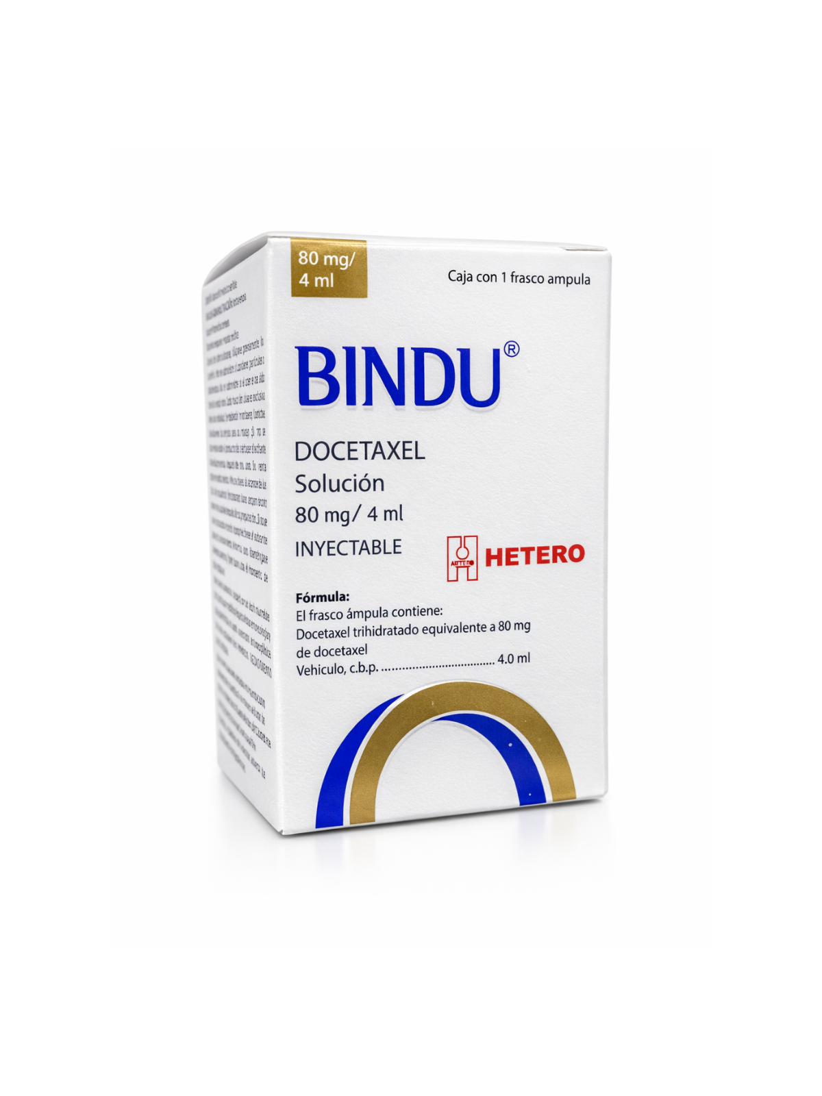 Bindu (Docetaxel) en su presentación de 80 mg / 4 mL es un fármaco oncológico perteneciente a la familia de los taxanos, utilizado principalmente en quimioterapia para tratar diversos tipos de cáncer.